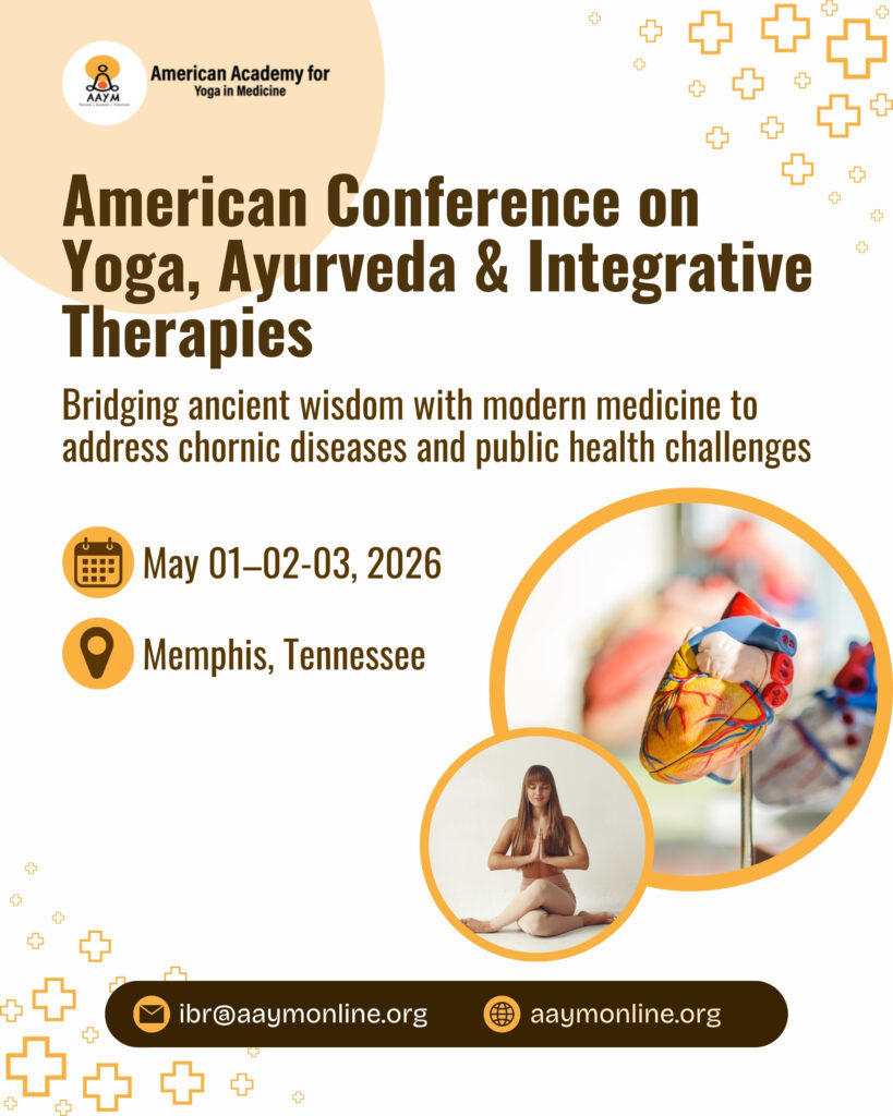 Recognizing the growing importance of this field, the American Academy of Yoga and Medicine (AAYM), in association with the Ministry of AYUSH, will host the world’s first American Conference on Yoga, Ayurveda & Integrative Therapies for Chronic Diseases & Public Health on May 1-2-3, 2026, in Memphis, Tennessee, USA.