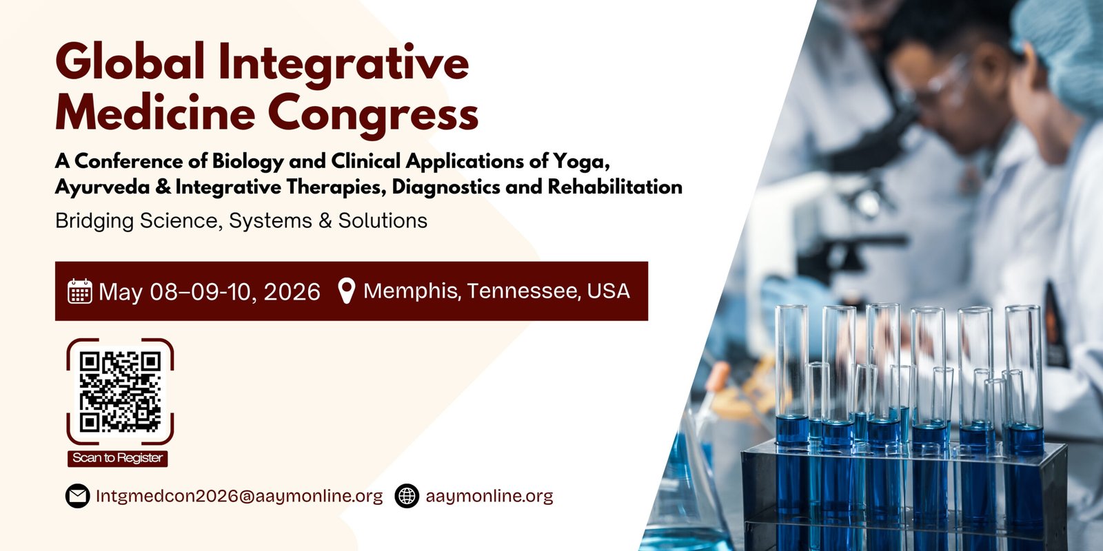 - Present the latest research on Yoga, Ayurveda, Integrative Medicine, mind–body medicine, biology, diagnostics, rehabilitation, integrative gastroenterology, the gut–brain axis, Psycho–Neuro–Immuno–Endocrinology (PNIE), Women’s Health, and Doctor’s Health programs.